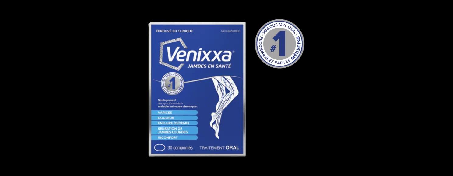 Ce produit pourrait ne pas vous convenir. Lisez et suivez toujours attentivement les directives sur l’étiquette du produit et la notice d’emballage. N’utilisez pas Venixxa si vous êtes enceinte ou si vous allaitez. Si vous prenez un médicament sur ordonnance, consultez un professionnel de la santé avant l’utilisation. Consultez un professionnel de la santé si les symptômes de la maladie veineuse chronique persistent ou s’aggravent. Si vous présentez ou souffrez d’une inflammation cutanée, d’une thrombophlébite ou d’une induration sous-cutanée, d’une douleur grave, des ulcères aux jambes, d’enflure soudaine d’une ou des deux jambes, d’insuffisance ou d’un trouble cardiaque ou rénal, consultez un professionnel de la santé.